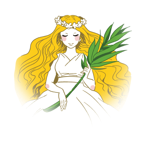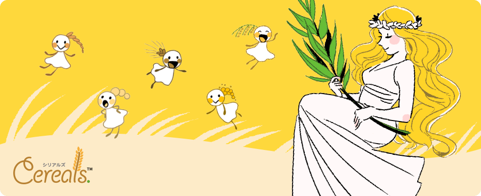 穀物の実りを見守る女神さまとおつかいの妖精たち。いつもこっそり農作物がおいしくなるようにおてつだいをしている。